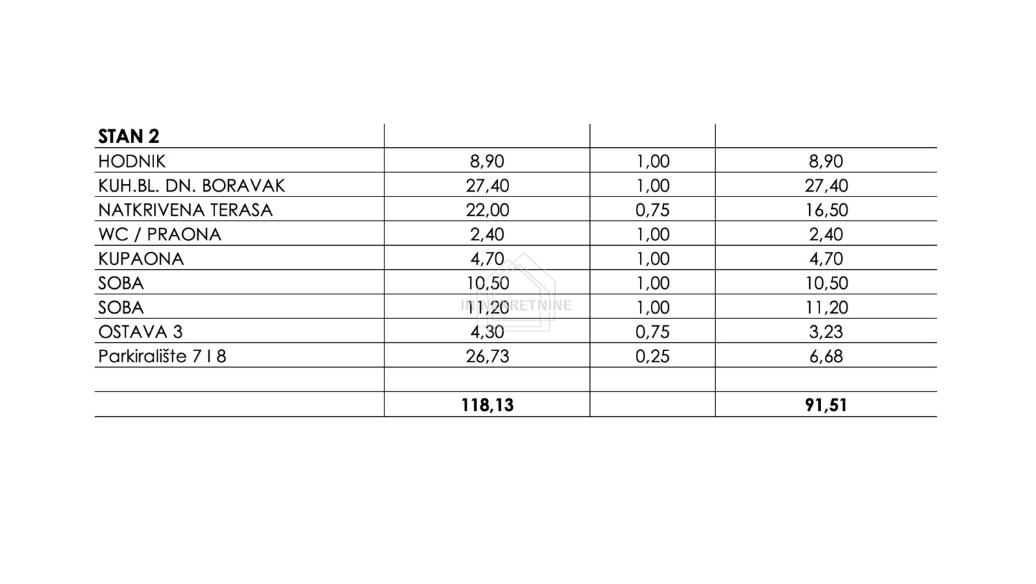 Die Wohnung hat eine Bruttofläche von 118,13 m², während die Netto-Wohnfläche 91,51 m² beträgt.