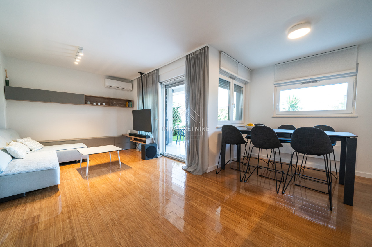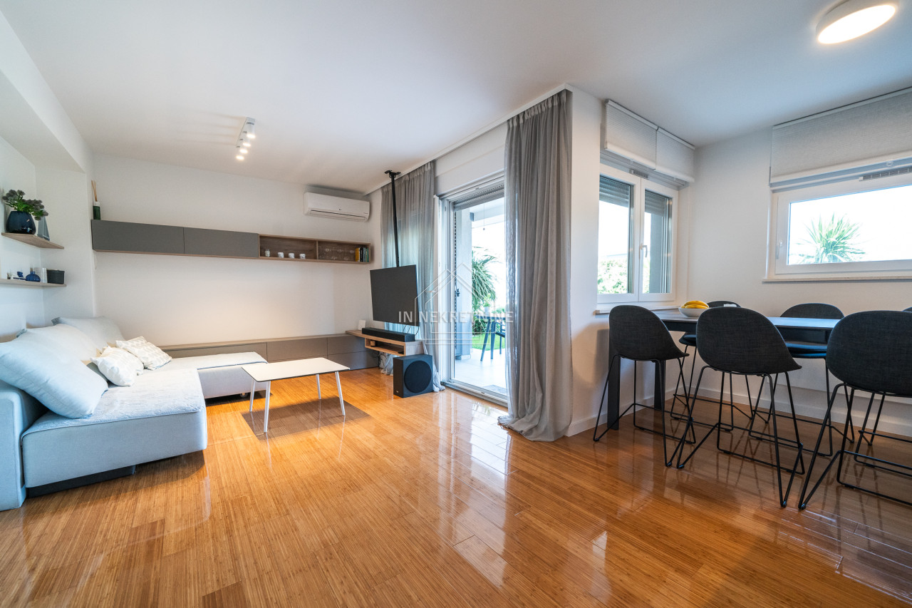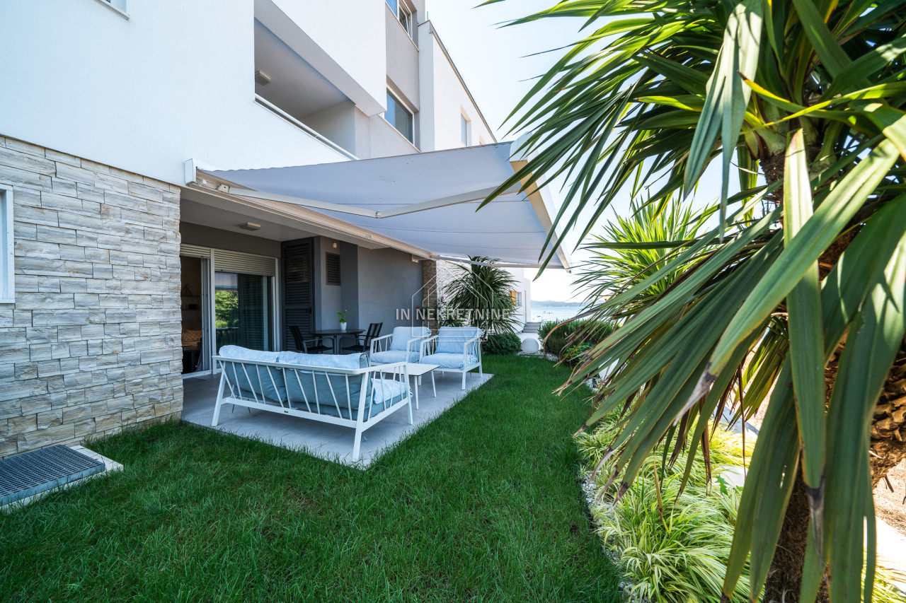 Zum Verkauf steht eine attraktive Erdgeschosswohnung in einem Neubau aus dem Jahr 2021, gelegen in einem der exklusivsten Stadtteile von Zadar – Diklo, in absoluter Toplage direkt am Meer. Direkt vor dem Gebäude befindet sich ein wunderschöner Strand, ideal zum Baden und Entspannen in den Sommermonaten.