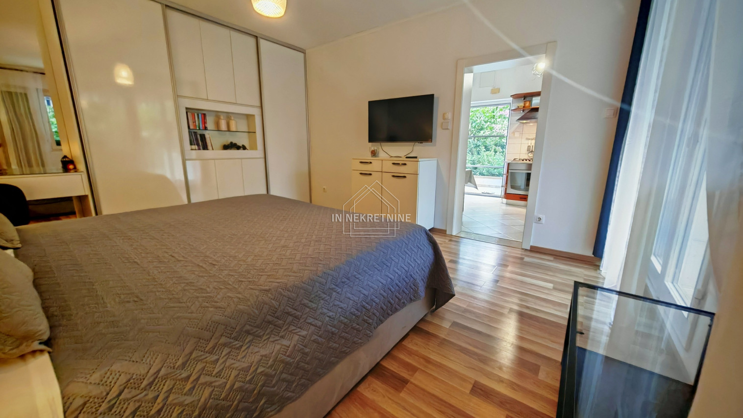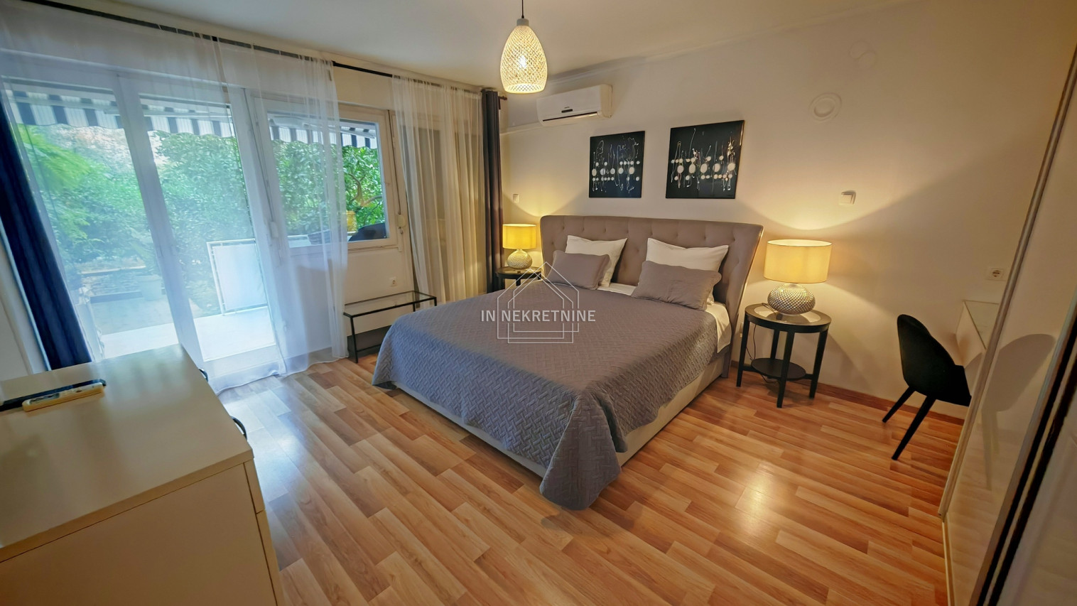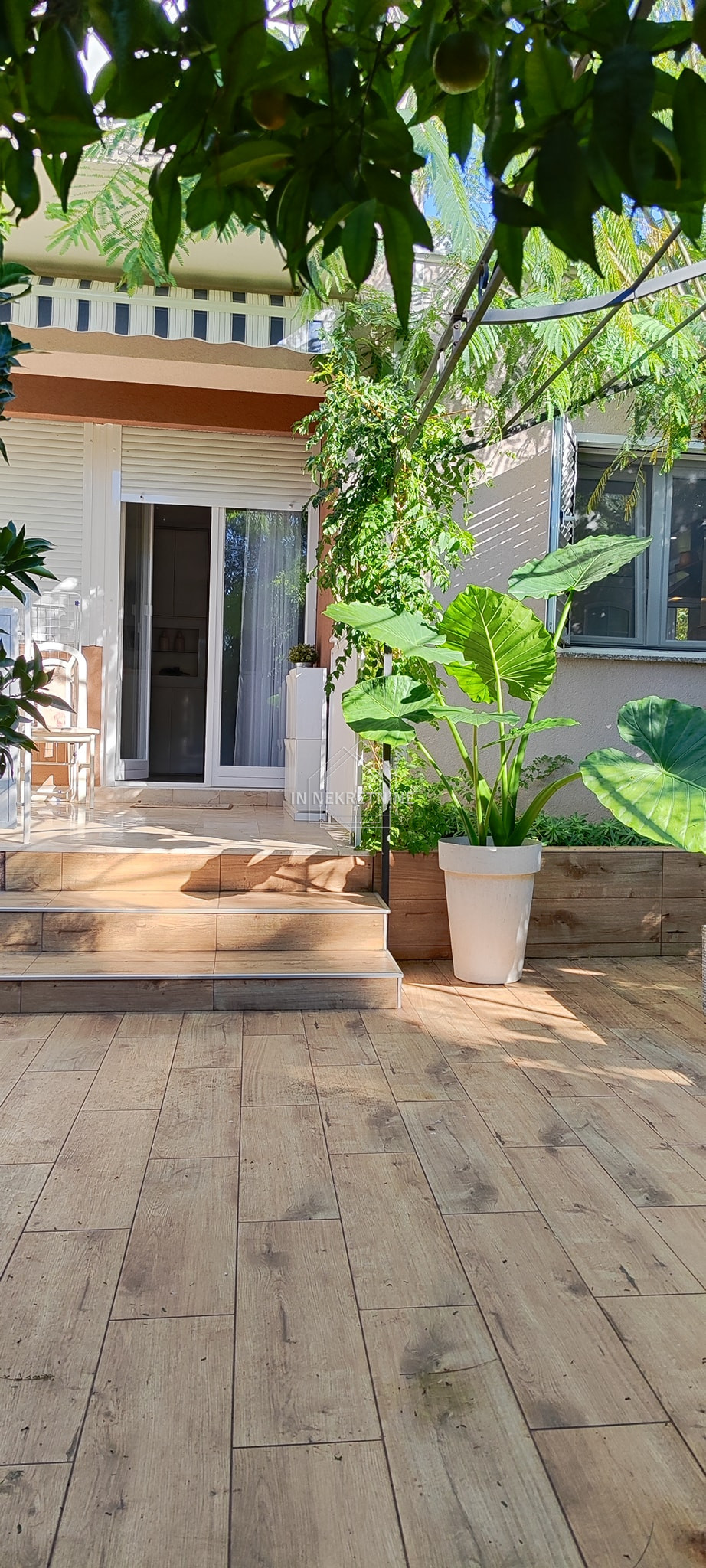 Die Wohnung verfügt über eine Wohnfläche von 35,78 m² und besteht aus einem Schlafzimmer, einer Küche und einem Badezimmer. Zusätzlichen Wert bieten eine Loggia/Balkon von 10 m², eine gestaltete Gartenterrasse von ca. 20 m² sowie zwei gepflegte Gärten mit einer Gesamtfläche von 136 m², bepflanzt mit Mandarinen und Blumen. Zur Immobilie gehören außerdem ein Stellplatz und ein kleiner Abstellraum.