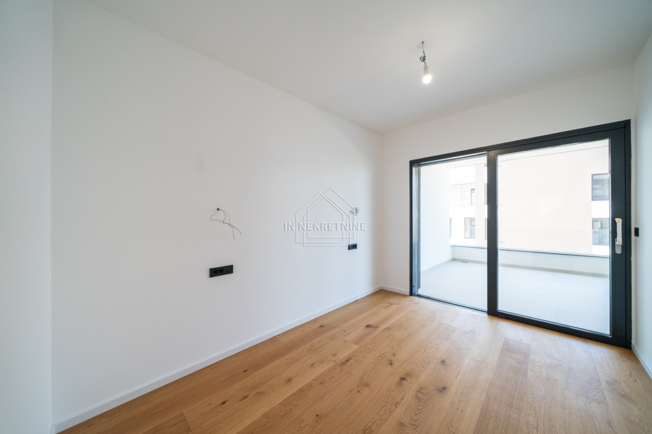 Die Wohnung besteht aus einem offenen Küchen- und Wohnbereich mit einer Fläche von 16,07 m², einem Flur mit 2,43 m², einem Schlafzimmer mit 7,41 m² sowie einem zweiten Schlafzimmer mit 10,40 m², das über ein eigenes Badezimmer mit 3,65 m² verfügt. Zusätzlich steht ein weiteres Badezimmer mit 3,30 m² zur Verfügung.