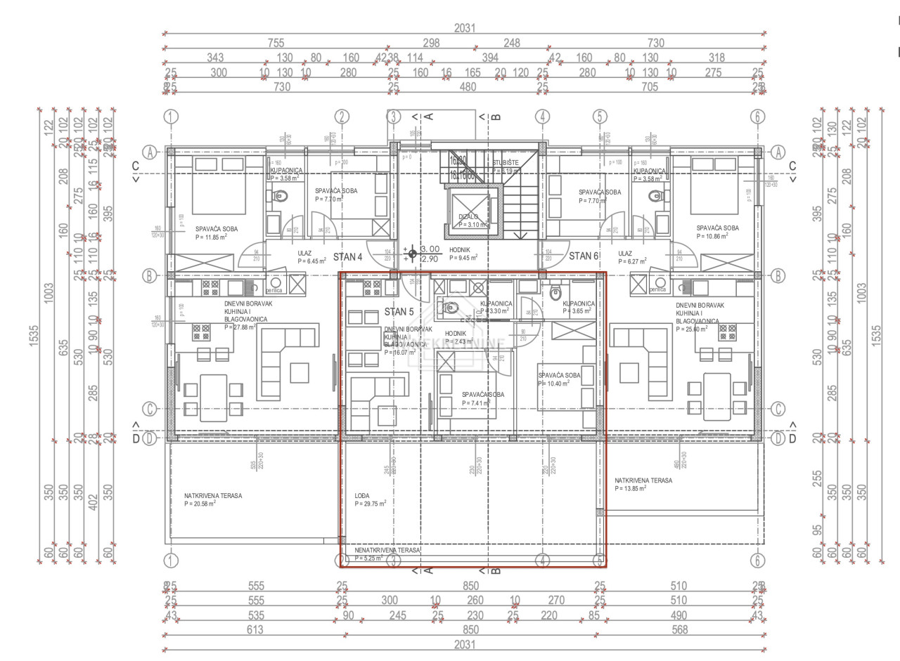 Einen besonderen Mehrwert bieten die großzügigen Außenflächen, darunter eine große Loggia mit 29,75 m², ideal für den Aufenthalt im Freien während eines Großteils des Jahres, sowie eine nicht überdachte Terrasse mit 5,10 m².