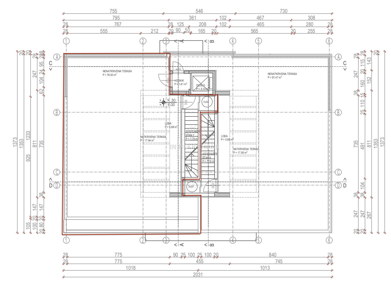 Ein besonderes Highlight ist die Dachterrasse mit einer Gesamtfläche von 102,32 m², die direkt mit dem Aufzug erreichbar ist. Auf der Dachterrasse befindet sich zudem ein privater Pool, der höchste Privatsphäre und einen traumhaften Meerblick bietet.