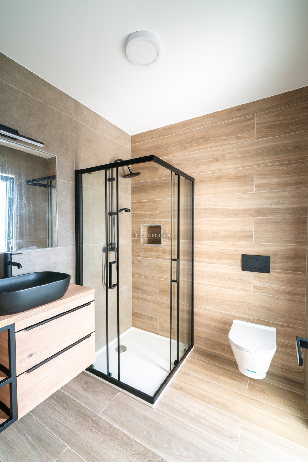 Zur hochwertigen Ausstattung zählen keramische Bodenbeläge, Fußbodenheizung in allen Räumen sowie Klimaanlagen in jedem Zimmer – ideal für ganzjähriges Wohnen.