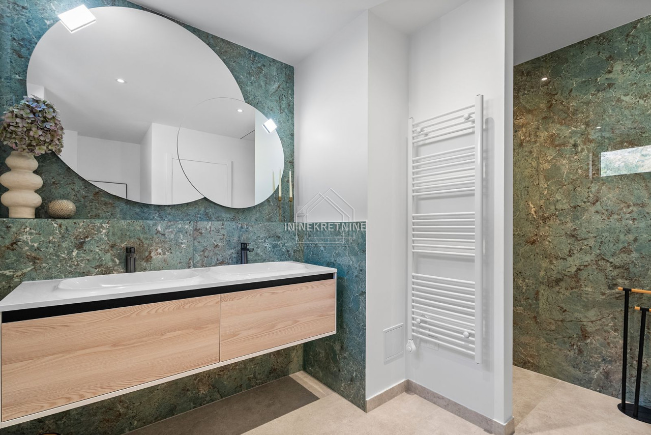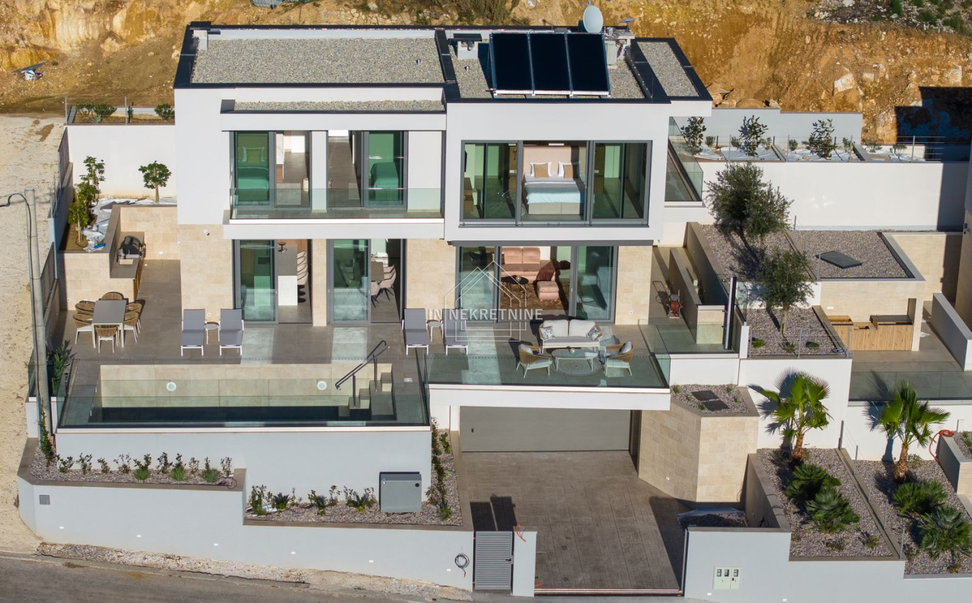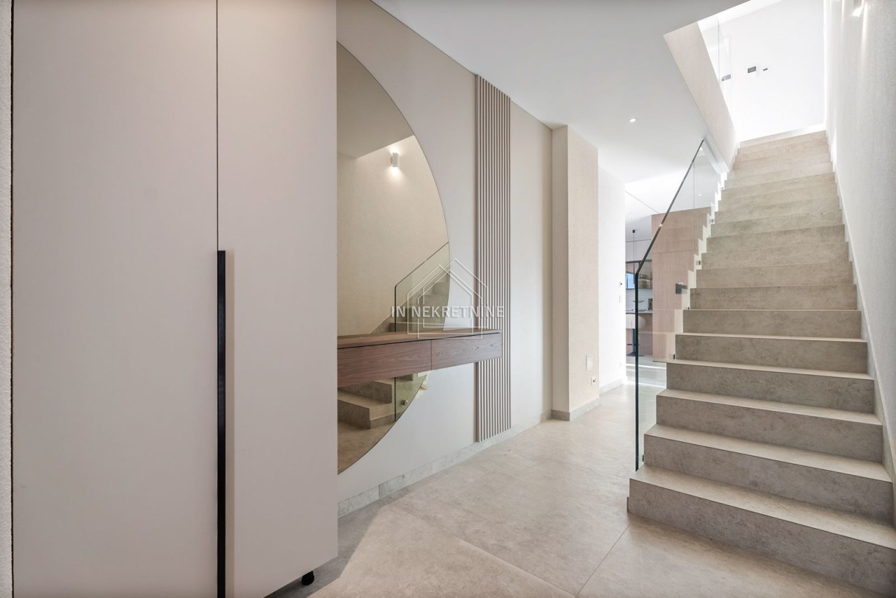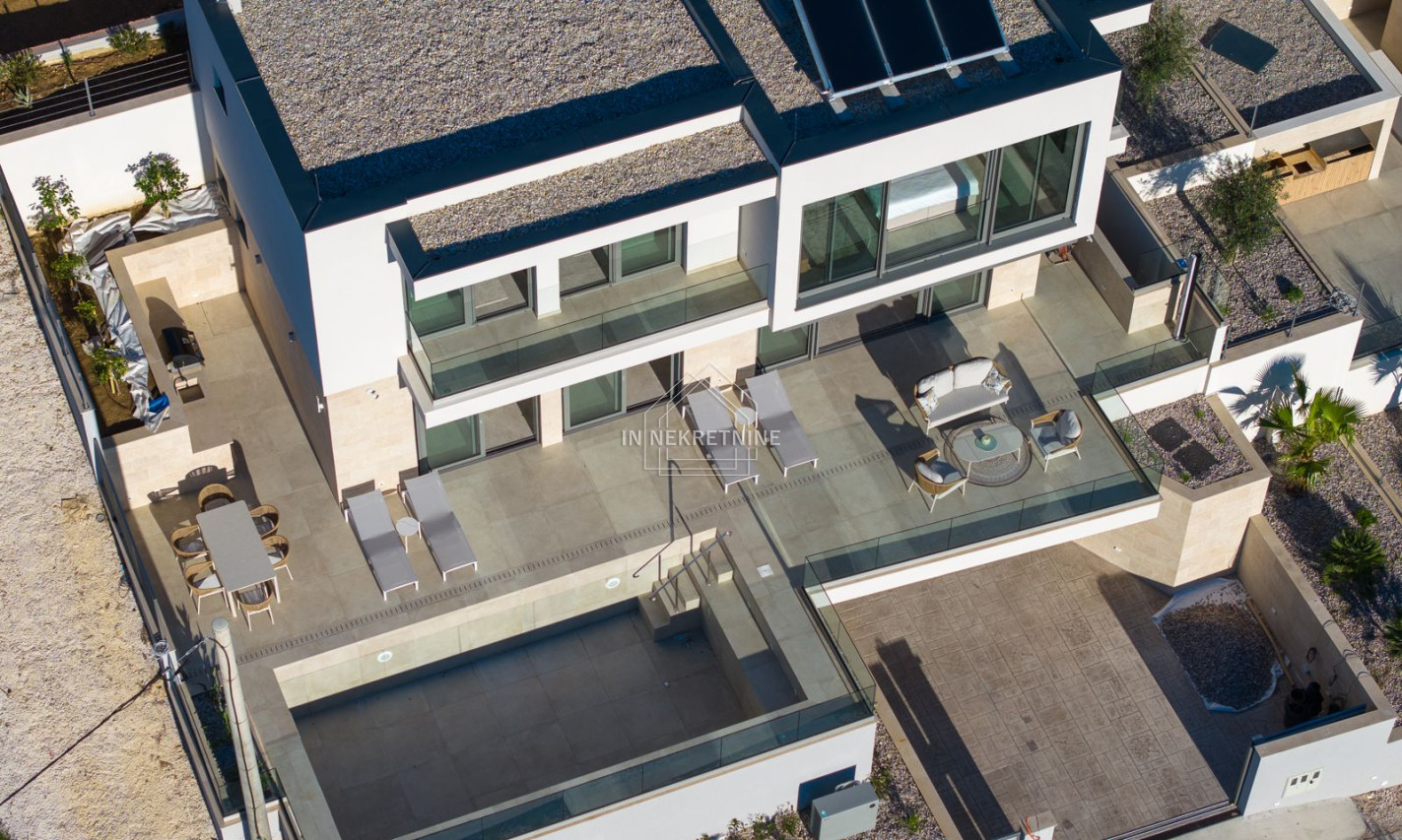 A true highlight is the impressive outdoor area. The stylish swimming pool invites relaxation and offers the perfect setting for Mediterranean living under the Croatian sun. Generous terrace areas provide luxurious outdoor living, making the property highly attractive for both holiday rentals and private use.