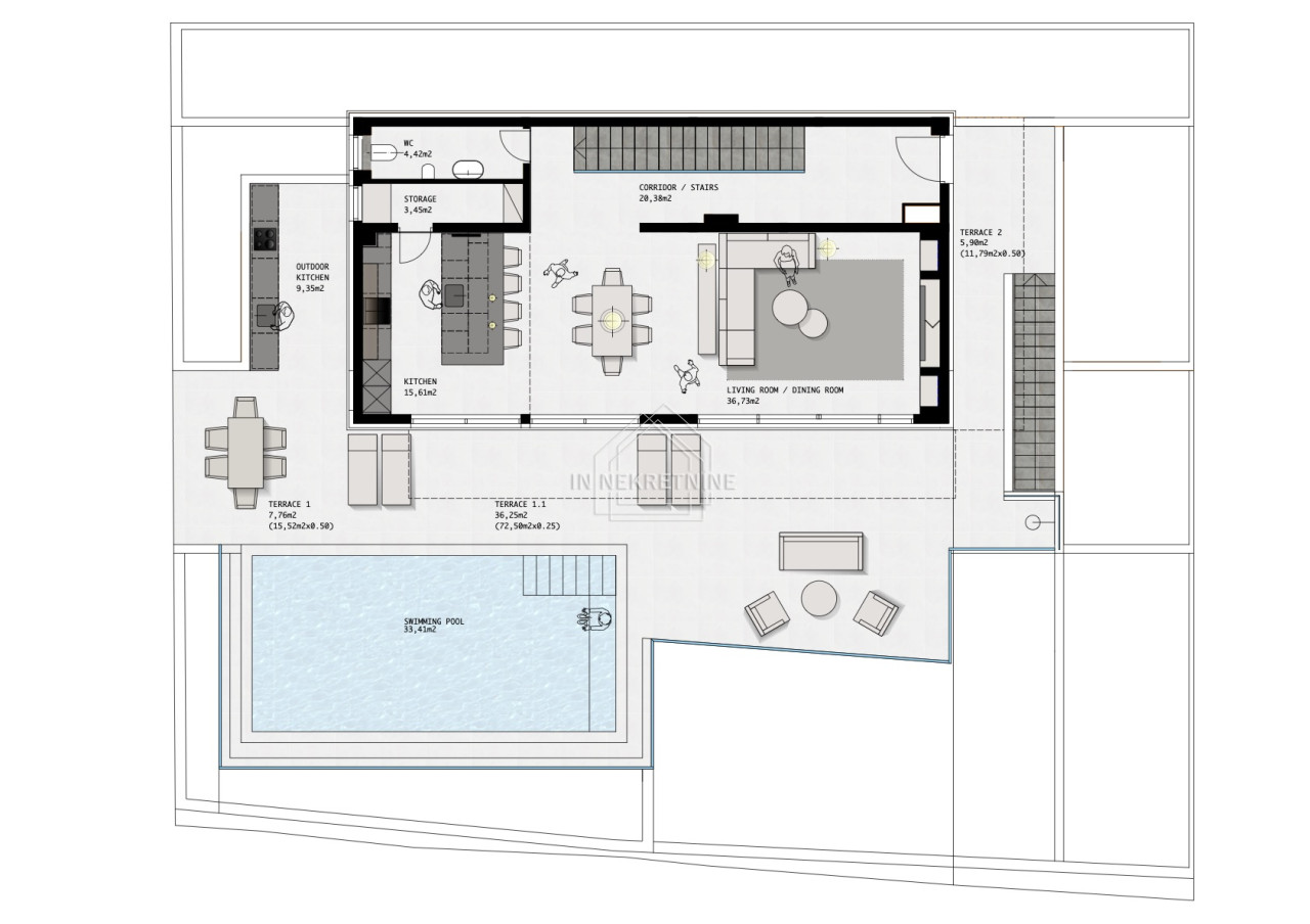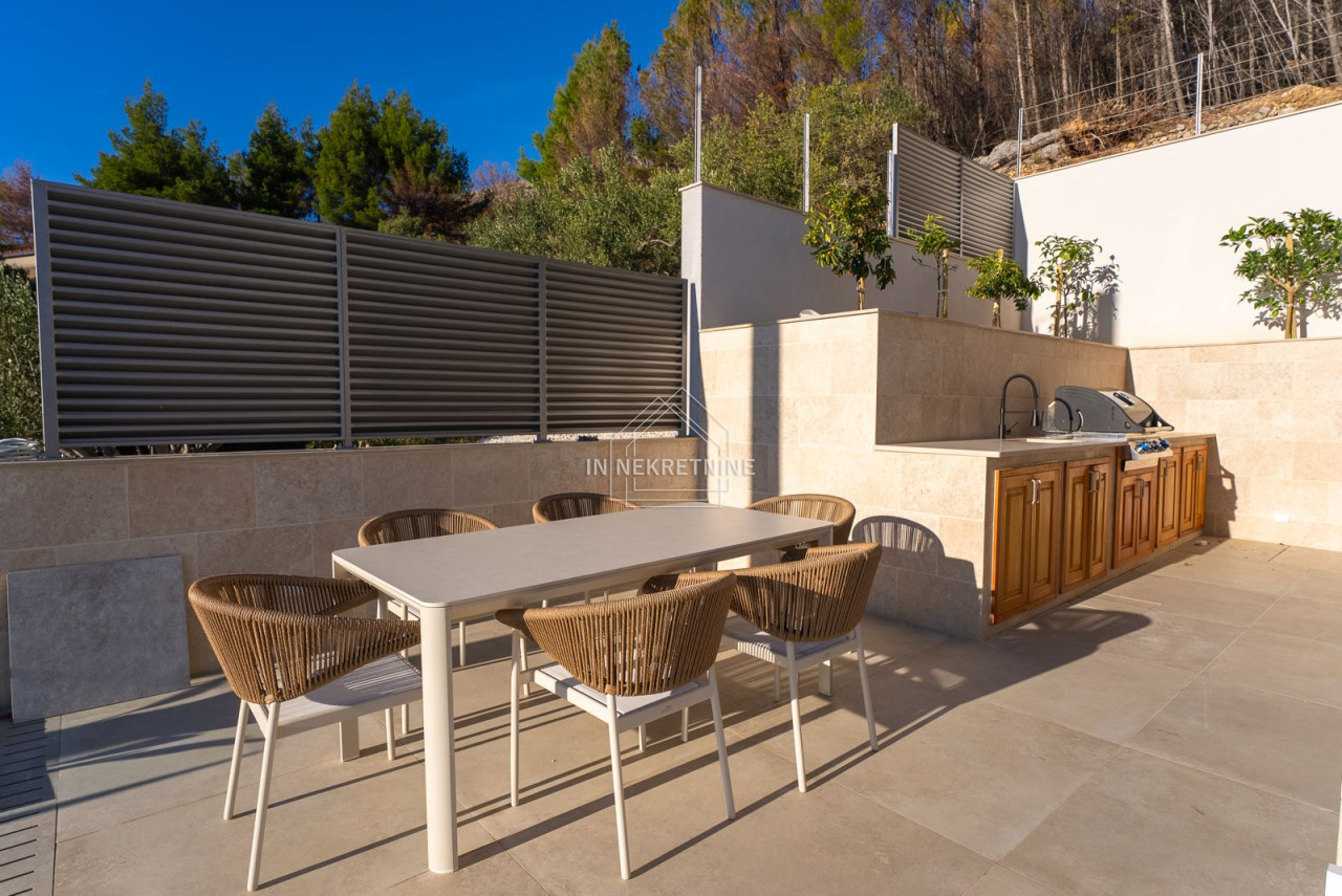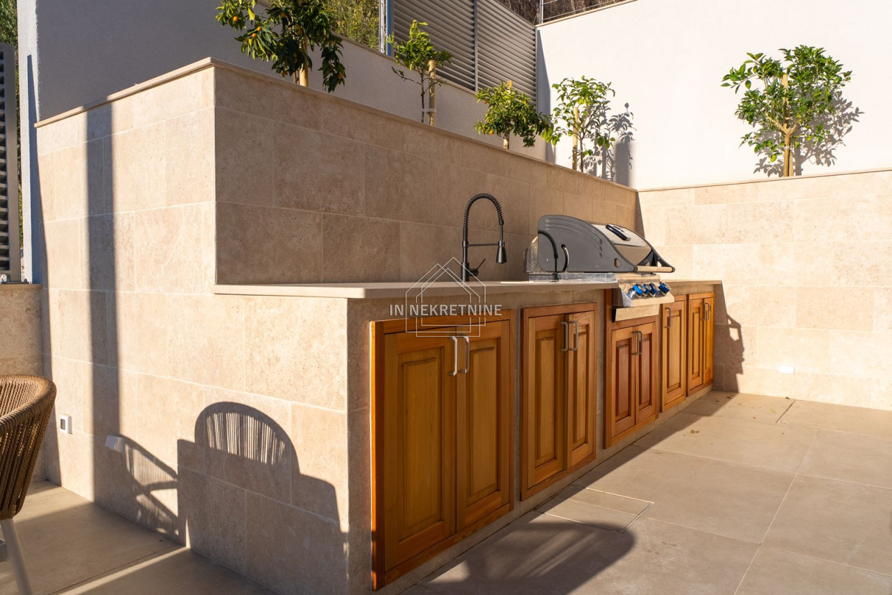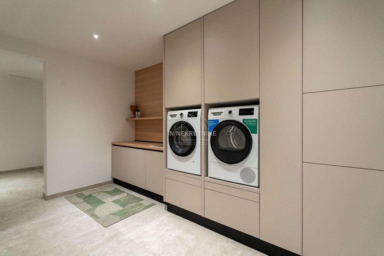A true highlight is the impressive outdoor area. The stylish swimming pool invites relaxation and offers the perfect setting for Mediterranean living under the Croatian sun. Generous terrace areas provide luxurious outdoor living, making the property highly attractive for both holiday rentals and private use.