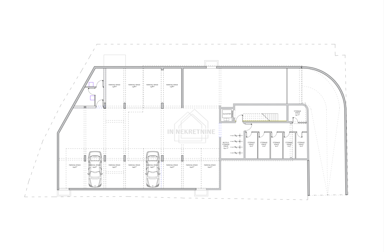 Uz stan pripada i spremište u podrumu, dva garažna parkirna mjesta (13,75 m2 i 19,25 m2) u podzemnoj garaži, kao i strojarnica.