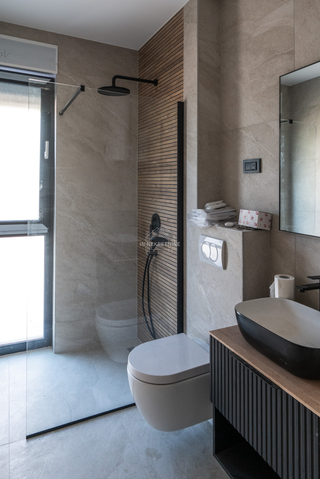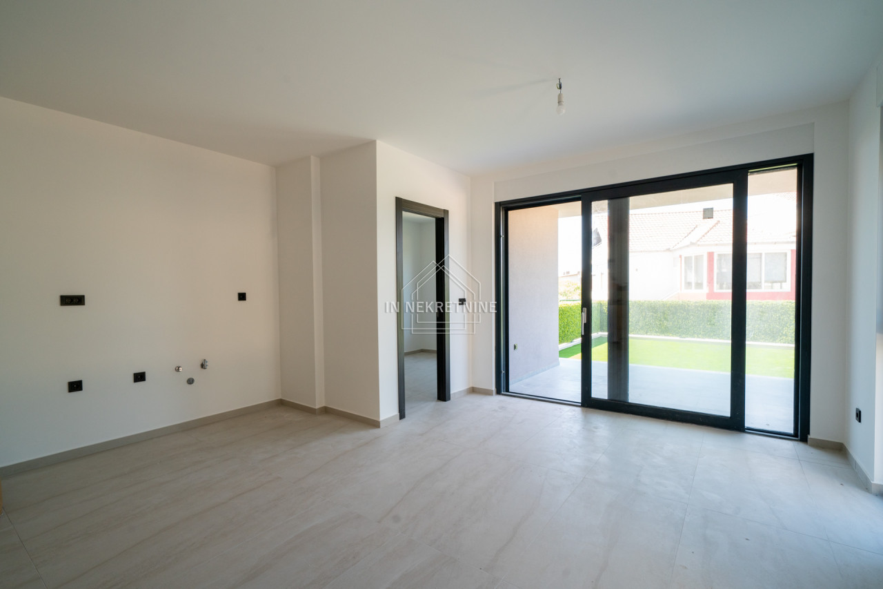 Stan se odlikuje modernim rasporedom interijera, vrhunskim materijalima i kvalitetnom završnom obradom, energetski je izuzetno učinkovit (A+ certifikat). Pripadajući vrt površine 30,28 m2 savršen je za opuštanje, sunčanje i uživanje u boravku na otvorenom u ljetnim mjesecima.