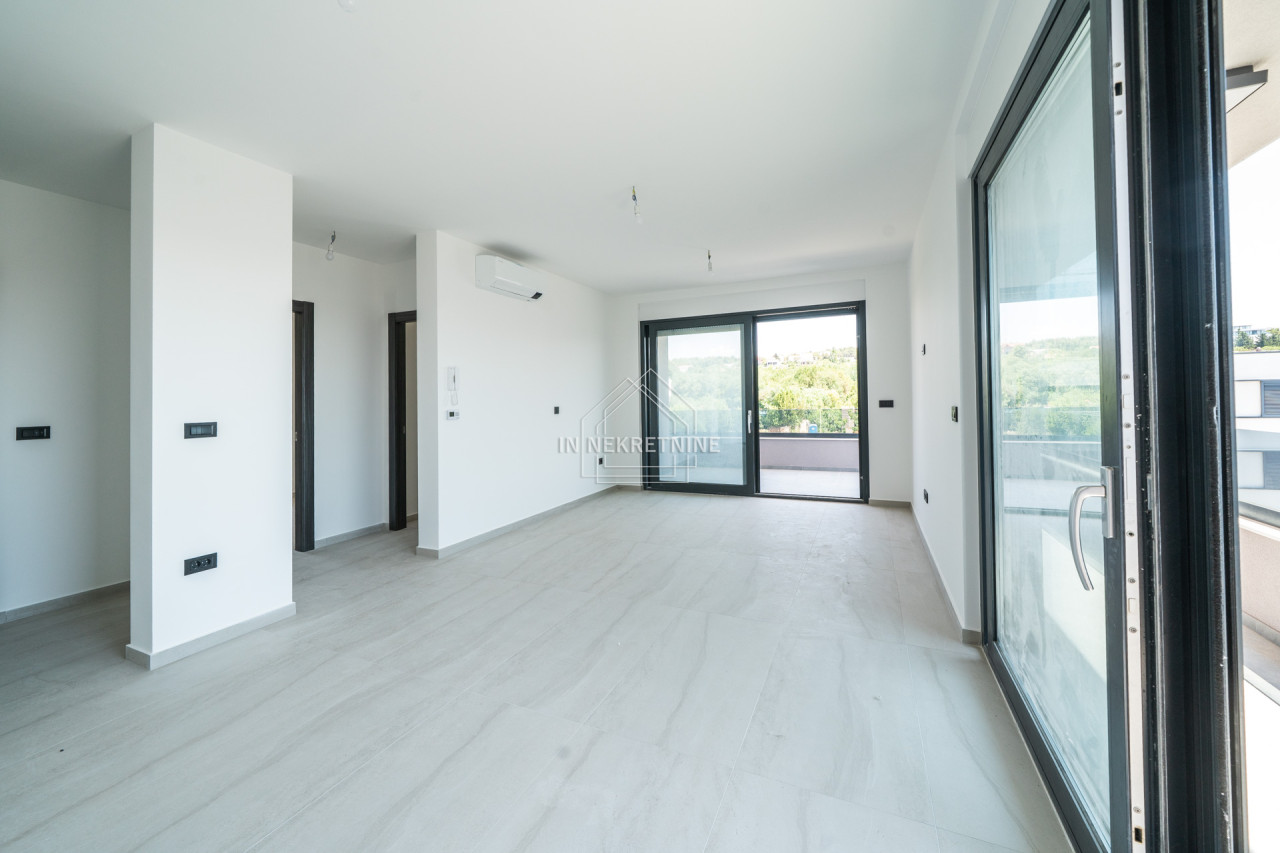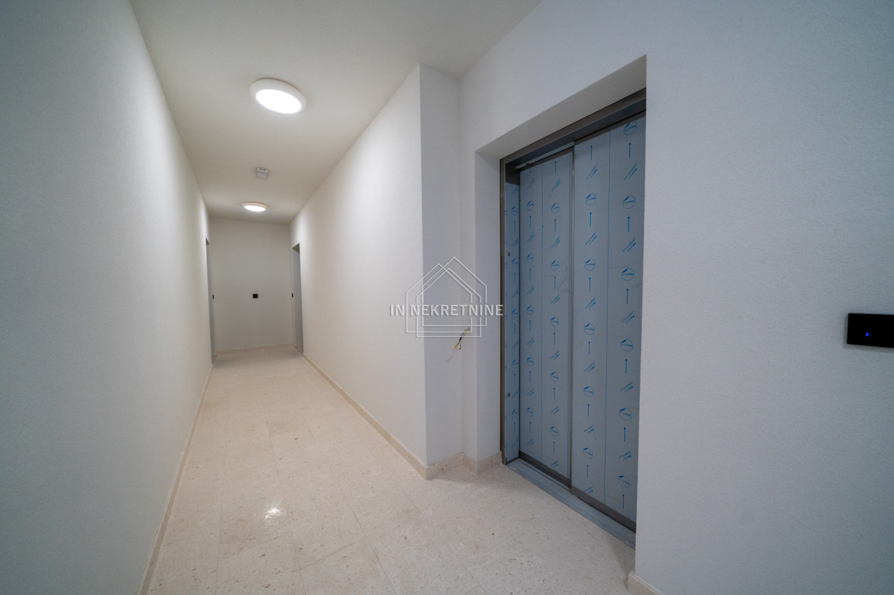 Stan se odlikuje modernim rasporedom interijera, vrhunskim materijalima i kvalitetnom završnom obradom, energetski je izuzetno učinkovit (A+ certifikat), nalazi se u zgradi s liftom što olakšava svakodnevno funkcioniranje. Pripadajući dio prostrane krovne terase savršen je za opuštanje, sunčanje i uživanje u pogledu na more. Stan je sjeverne orijentacije, a s krovne terase pruža se panoramski pogled na more.